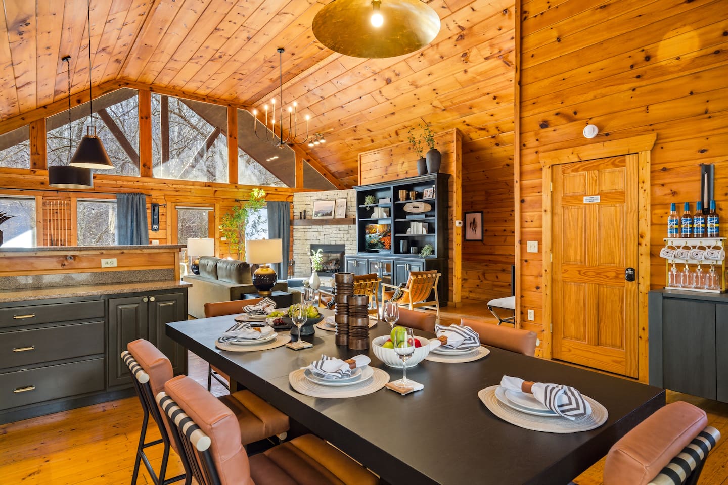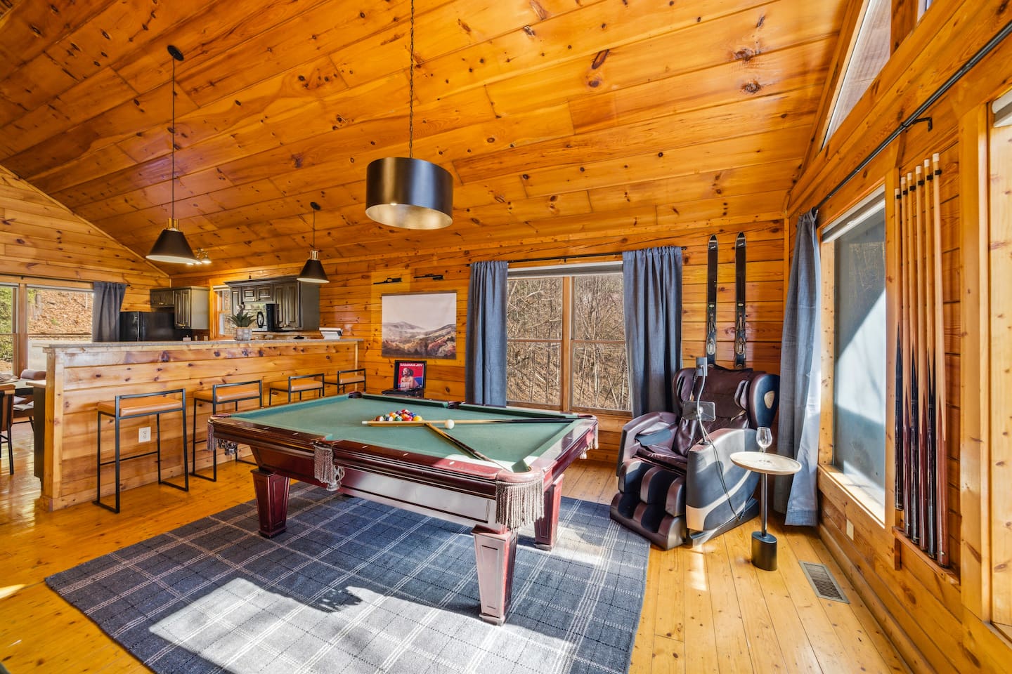 Guests will have private and exclusive access to the entire 3-story cabin and all its amenities, including the indoor pool, hot tub, and sauna. Check-in is simple and contactless via a unique door code provided before your 4:00 PM ET arrival. Free private parking is available for your vehicles directly in front of the cabin. Please note that a few locked owner’s closets are not accessible to guests.